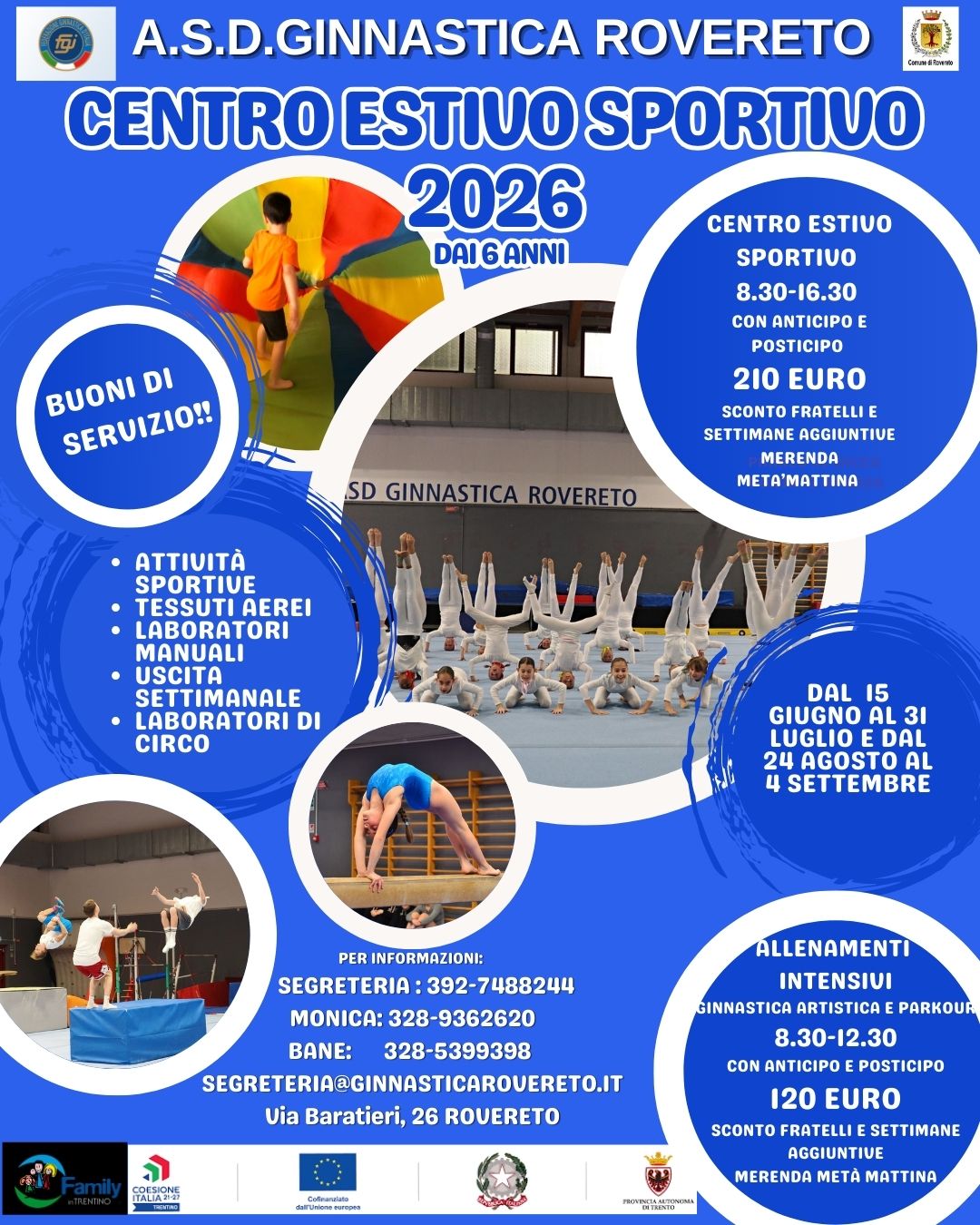 Documenti Raccolta proposte (File pdf 22,01 MB) Scuola Musicale estate 2026 (File image/png 1,07 MB) Centro Natatorio estate 2026 (File pdf 4,29 MB) Museo Civico estate 2026 Campus (File pdf 329,84 kB) Museo Civico estate 2026 (File pdf 11,34 MB) Freeway estate 2026 (File image/png 2,77 MB) Ginnastica Rovereto estate 2026 (File image/jpeg 285,18 kB) Intercity estate 2026 (File pdf 661,94 kB) C'Entro Anch'io Elementari estate 2026 (File pdf 469,66 kB) C'Entro Anch'io Medie estate 2026 (File pdf 618,01 kB) Eureka elementari estate 2026 (File pdf 277,10 kB) Eureka medie estate 2026 (File pdf 260,89 kB) Multiplayer estate 2026 (File pdf 155,41 kB) FCVG 2026 (File pdf 423,21 kB) Centri estivi "La vela" 2026 (File pdf 294,64 kB) Camp Tana dei papà estate 2026 (File image/jpeg 281,19 kB) Bike Camp Tana dei papà estate 2026 (File image/jpeg 282,34 kB) Camp troll estate 2026 (File pdf 791,49 kB) La Vela estate 2026 (File pdf 294,64 kB) Back to School 2026 (File pdf 1,93 MB) Estate Centro L 2026 (File pdf 2,64 MB) Catalogo EstateLAB esperienze per crescere della Provincia Autonoma di Trento (File pdf 4,80 MB) estate family https://estatefamily.it/