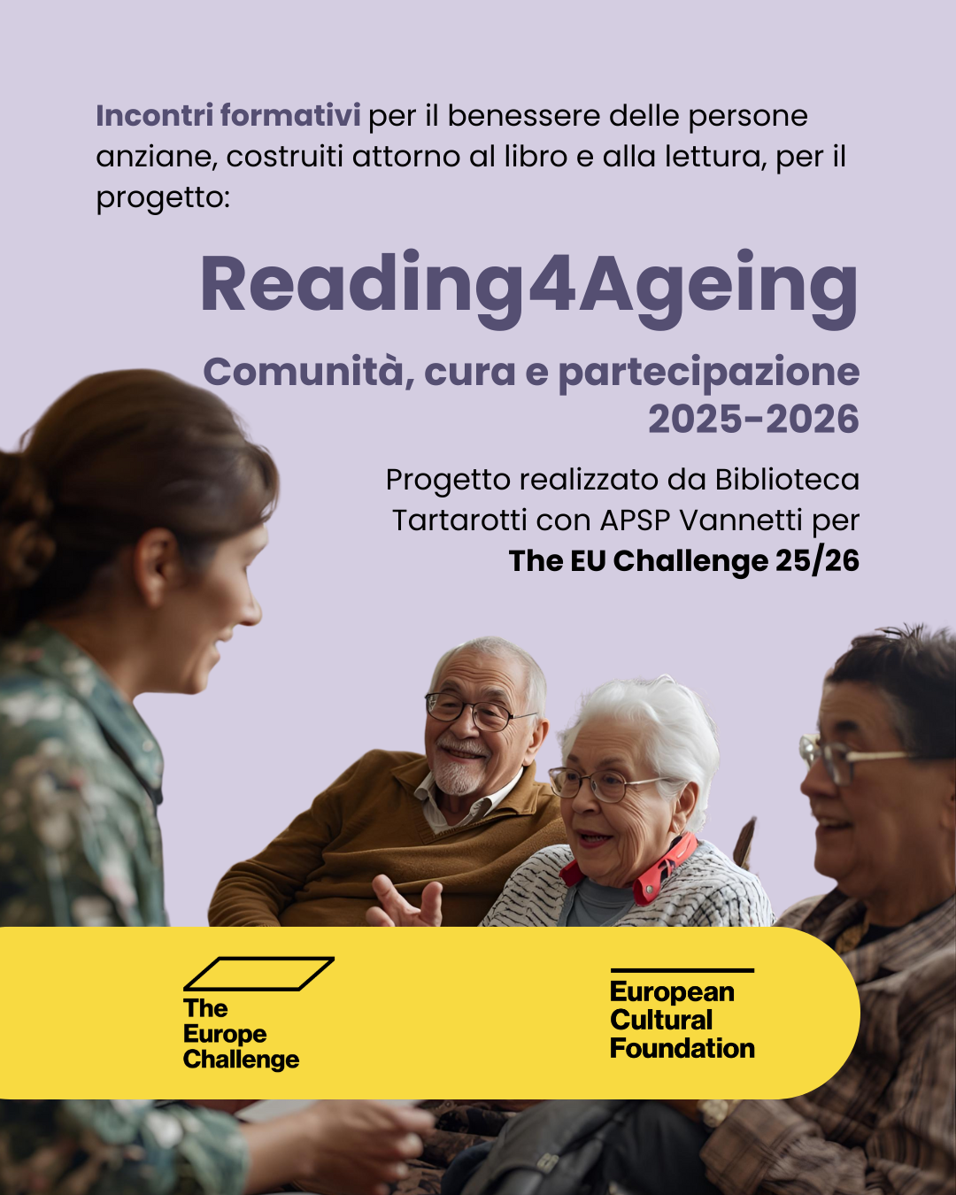 La Biblioteca Civica “G. Tartarotti” di Rovereto, in collaborazione con APSP Vannetti e Spazio Argento, propone da dicembre 2025 a maggio 2026 Reading4Ageing, un programma formativo composto da incontri, laboratori e conferenze dedicati alla lettura come strumento di relazione, stimolo e benessere per le persone anziane.