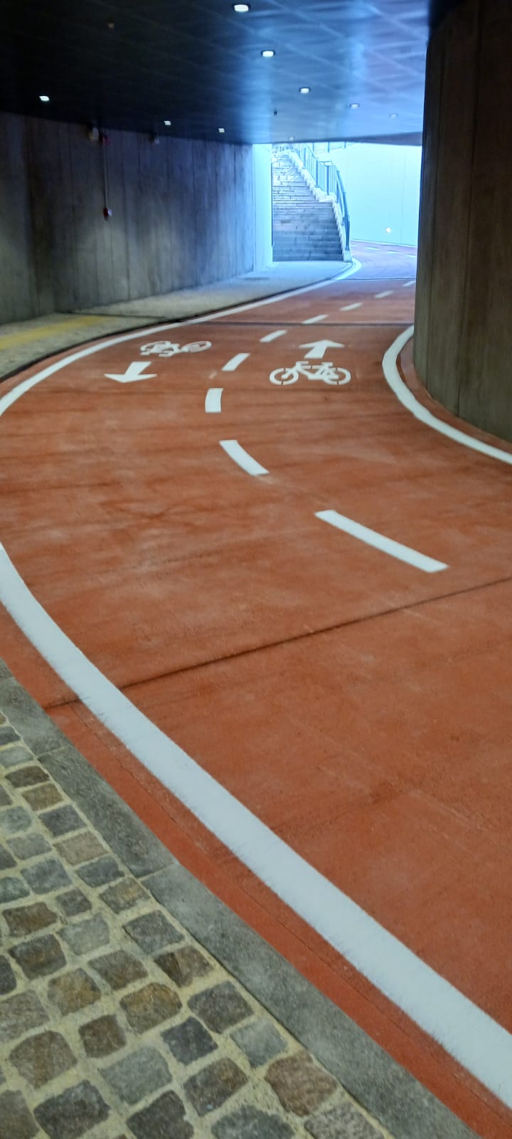 La nuova infrastruttura inaugurata oggi rappresenta l'ultimo dei 4 appalti in cui è stato suddiviso l’intervento per ridurre al minimo i disagi al traffico e ai pedoni e gestire al meglio le numerose interferenze con i sottoservizi; è composta da circa 40 metri di percorso sotterraneo con una pista ciclabile larga 4 metri e un corridoio pedonale largo 2 metri, dotato di pavimentazione per ipovedenti e di una rampa di scale per l’accesso alla superficie. A questi si aggiungono i 50 metri della galleria di accesso proveniente da Ccrso Rosmini, anch’essa larga 4 metri e destinata principalmente alla mobilità ciclabile. L’intervento, della durata di circa 9 mesi, è stato eseguito dall’impresa Costruzioni F.lli Pedrotti.