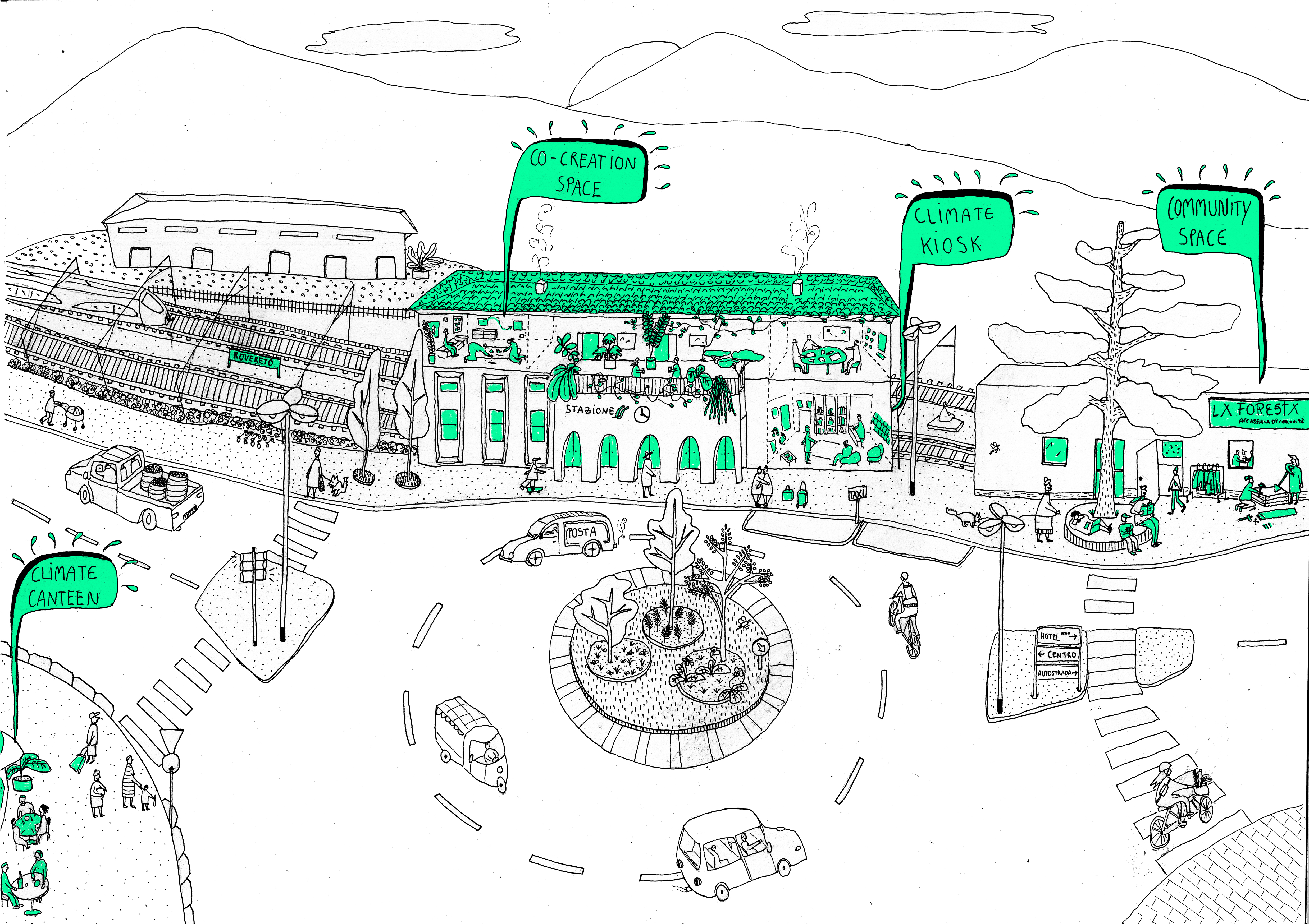 In tale contesto il Comune di Rovereto ha assunto il ruolo di capofila, coinvolgendo in qualità di partner operativi rispettivamente: Associazione La Foresta Accademia di Comunità, Comunità della Vallagarina, Europe Consulting, Trentino Social Tank, Centro per la Cooperazione Internazionale, Brave New Alps, Università degli Studi di Trento, Studio di Architettura e Urbanistica Campomarzio, nonché le Ferrovie dello Stato Italiane (FS) e la Rete Ferroviaria Italiana (RFI) in qualità di proprietari degli spazi.