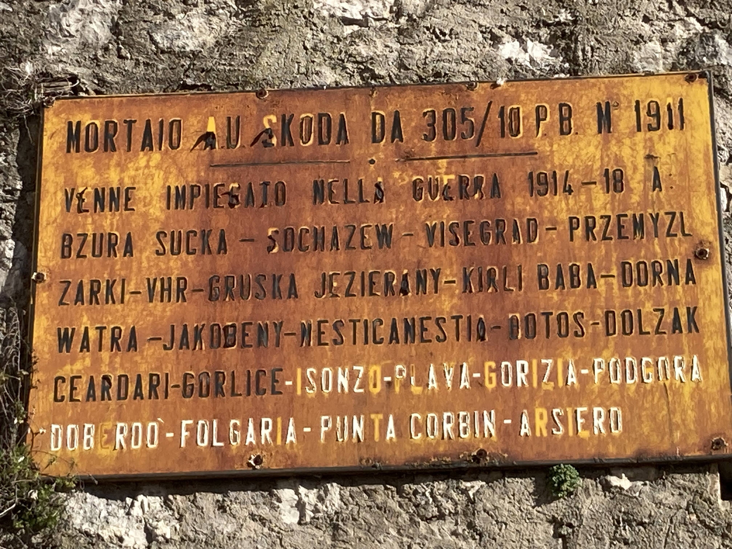 Descrizione Monumento È stato posto ai piedi delle mura del castello a ricordo della Prima Guerra Mondiale. Cannone retro Mortaio Mortaio Targa Mortaio