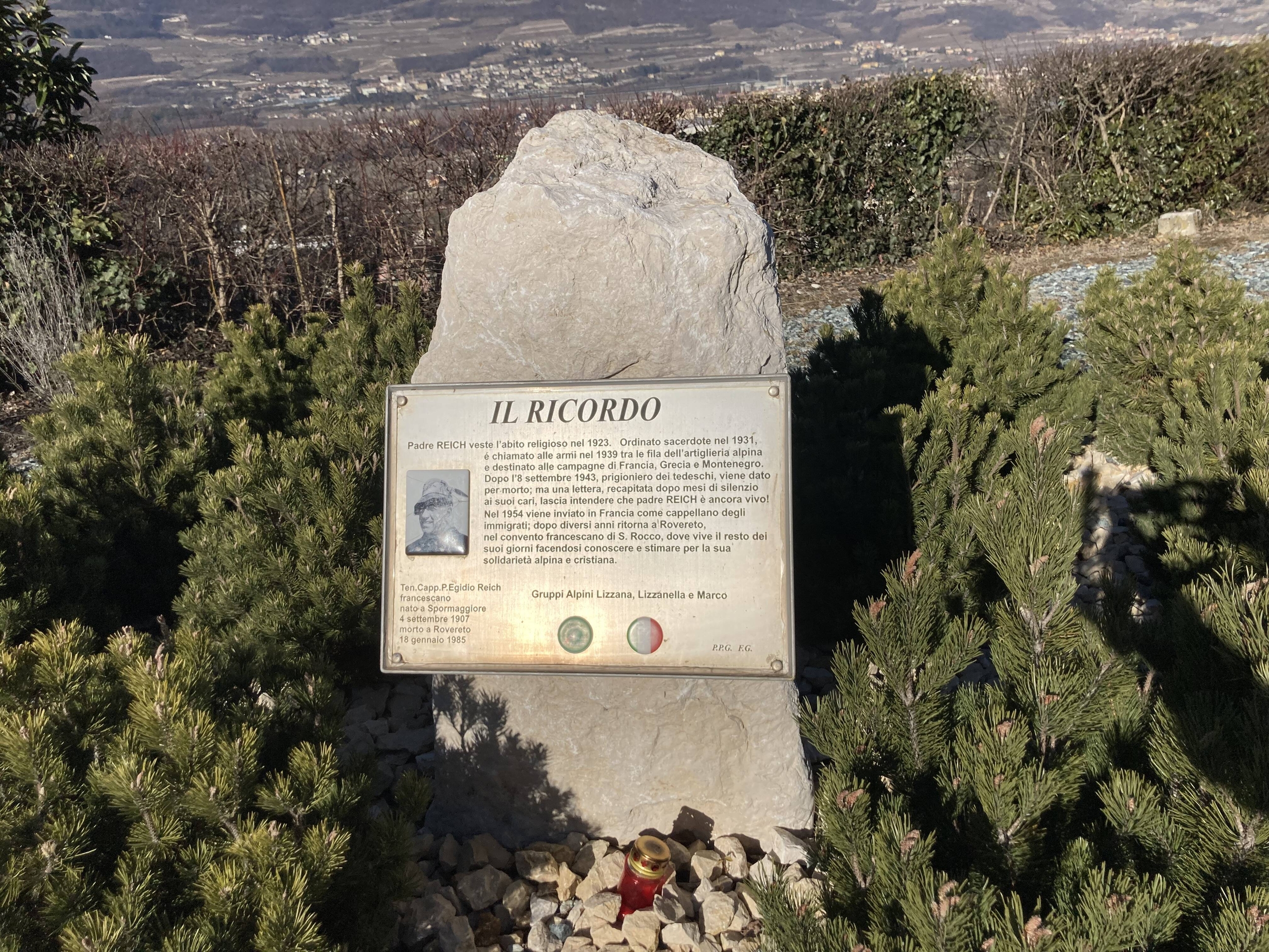 L'apertura centrale circolare dà luce alla cripta in cui è conservato il busto del comandante della Prima Armata italiana che arginò l'offensiva austriaca del 1916, G. Pecori Girardi. Ai margini della strada di accesso sono visibili alcune opere militari.