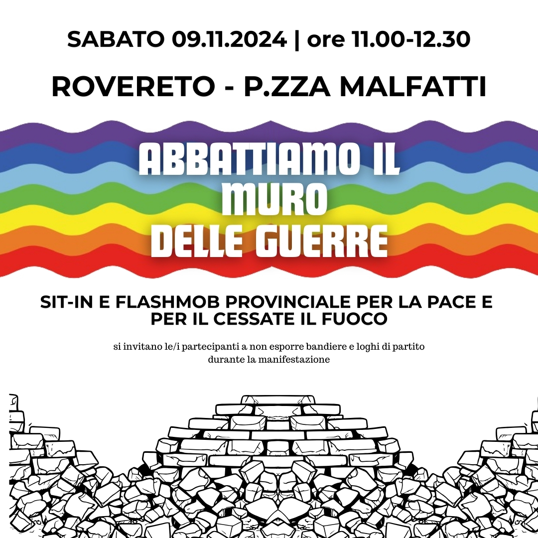 L’appuntamento fissato per sabato mattina 9 novembre è pensato per proseguire il percorso sui temi della Pace che ha visto varie organizzazioni e 150 persone dal Trentino partecipare alla giornata di mobilitazione che ha portato in piazza a fine ottobre circa 80mila persone in tante piazze d’Italia.