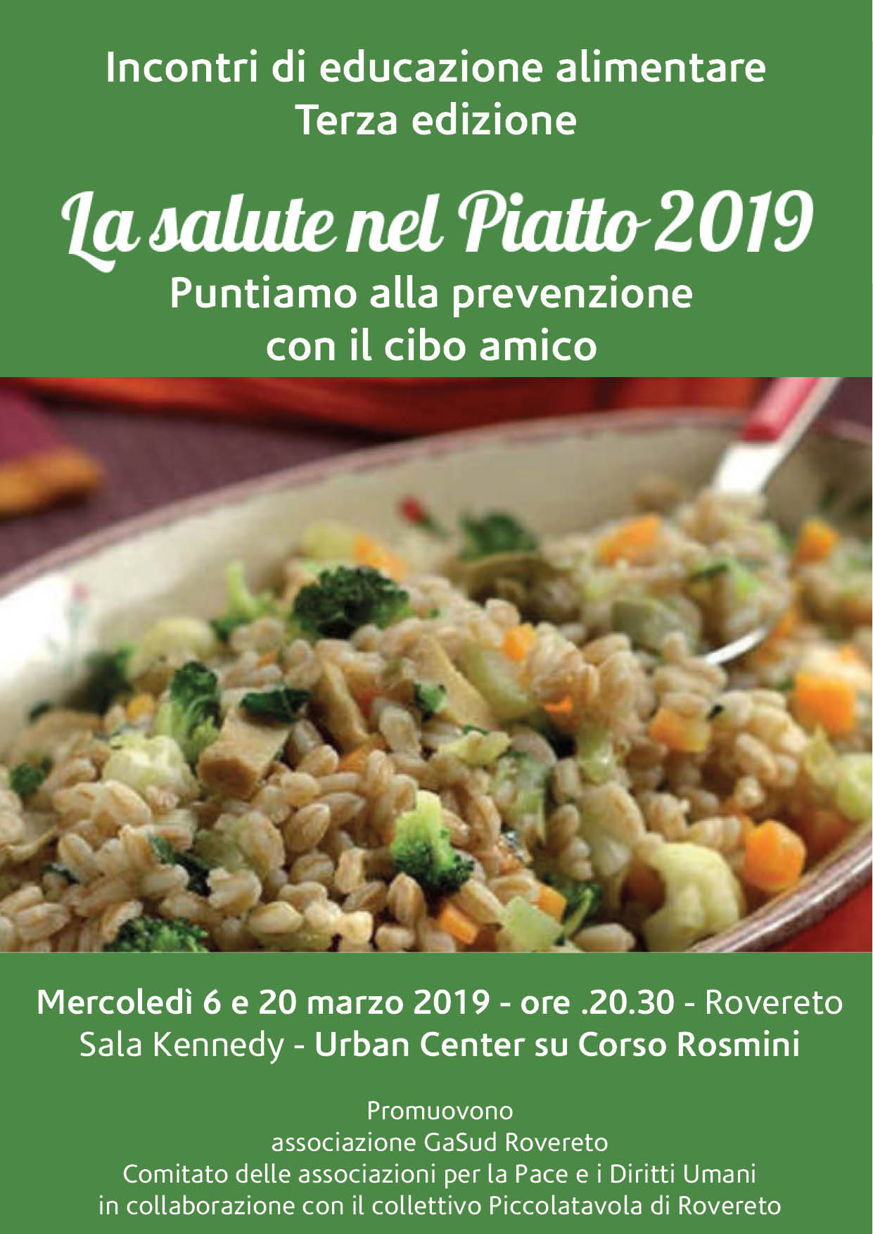 Terza edizione del ciclo di serate e laboratori ‘La salute nel piatto… prevenzione’ promosso dal Comitato delle associazioni per la Pace e i Diritti Umani, dal collettivo Piccolatavola, GaSud Rovereto – Gruppo di acquisto solidale.