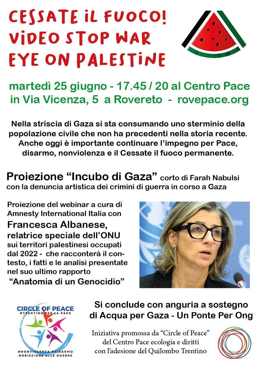 Iniziativa promossa da “Circle of Peace” del Centro Pace ecologia e diritti – Rovereto con l’adesione del Quilombo trentino e dell'arcipelago del Cantiere di Pace.