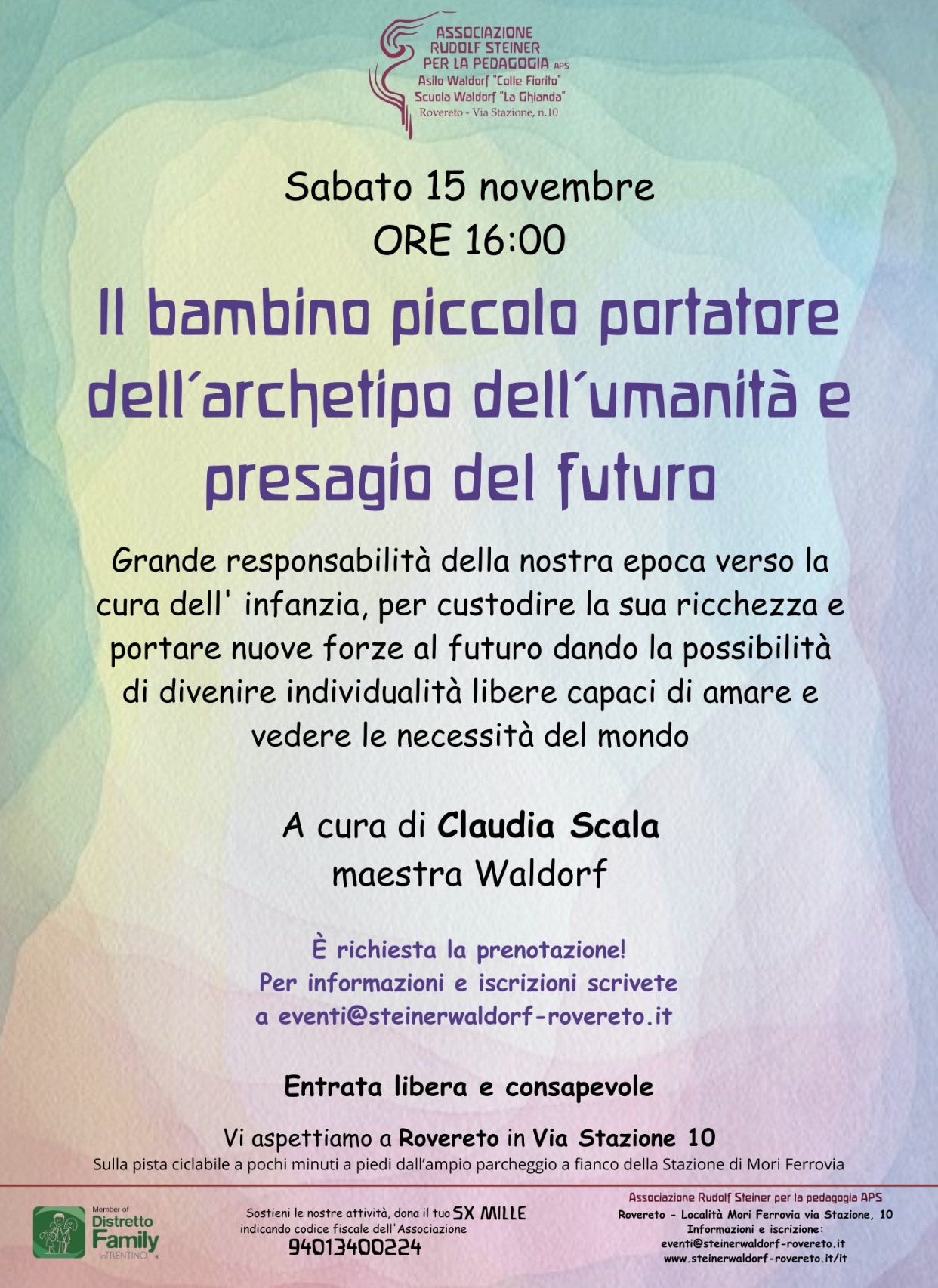 E' richiesta la prenotazione scrivendo a eventi@steinerwaldorf-rovereto.it