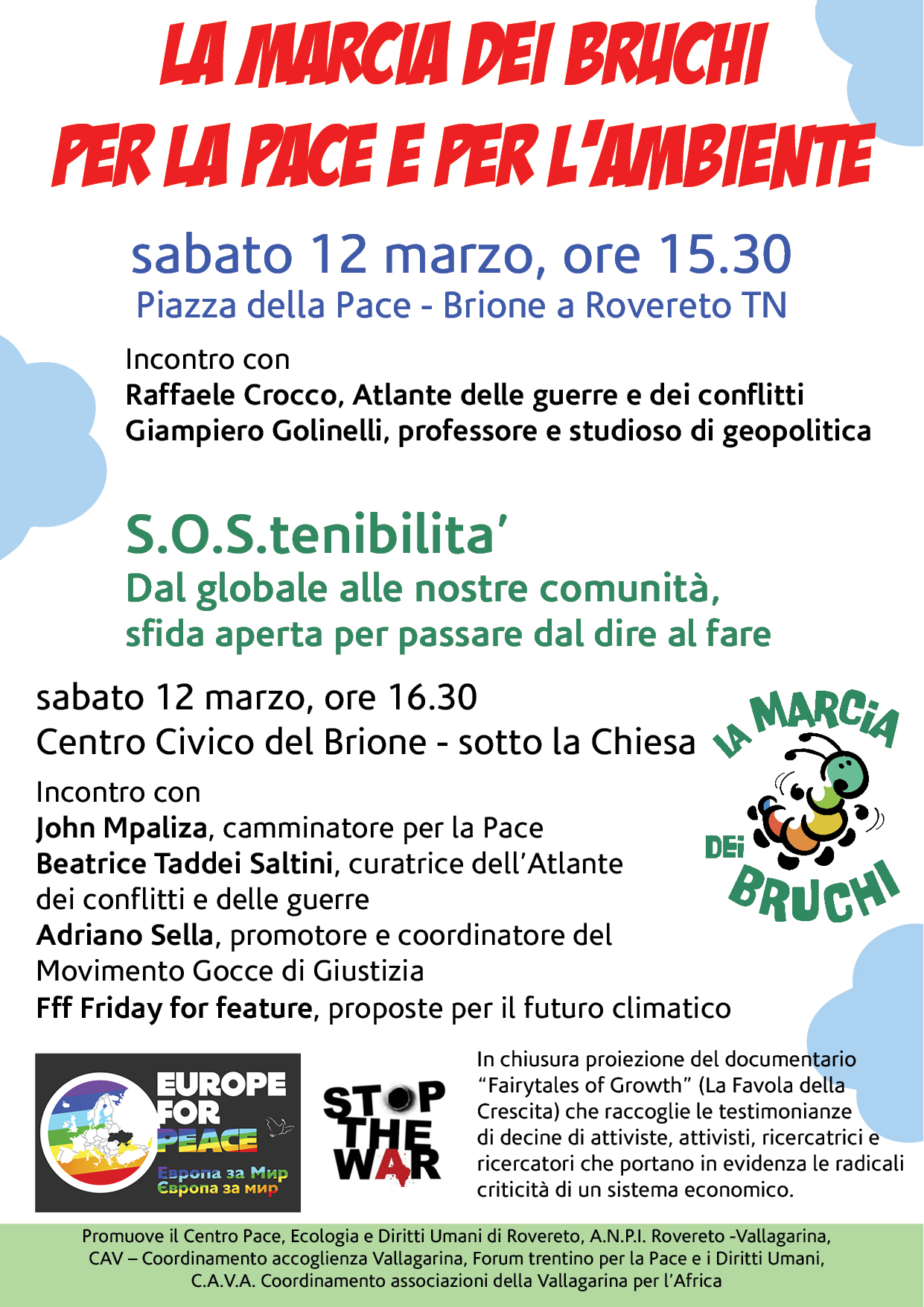 Promuove il Centro Pace, Ecologia e Diritti Umani di Rovereto, A.N.P.I. Rovereto -Vallagarina, CAV – Coordinamento accoglienza Vallagarina, Forum trentino per la Pace e i Diritti Umani, C.A.V.A. Coordinamento associazioni della Vallagarina per l’Africa