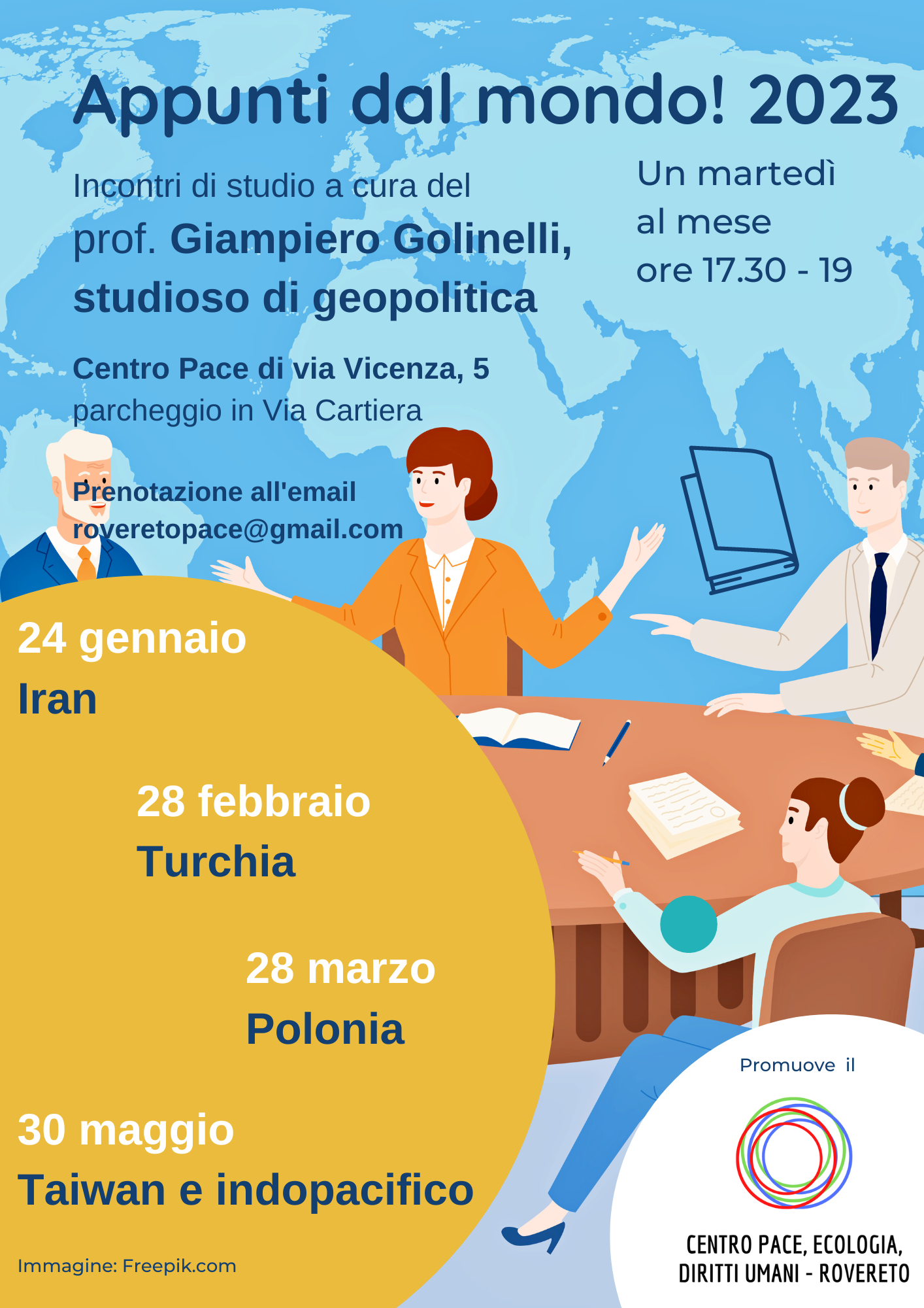 Dopo l’incontro sull’Iran, riparte il ciclo di incontri il prossimo martedì 28 febbraio dalle 17.30 alle 19.00 al Centro Pace di Rovereto con “Il fronte Mediterraneo e il caso Turchia”.