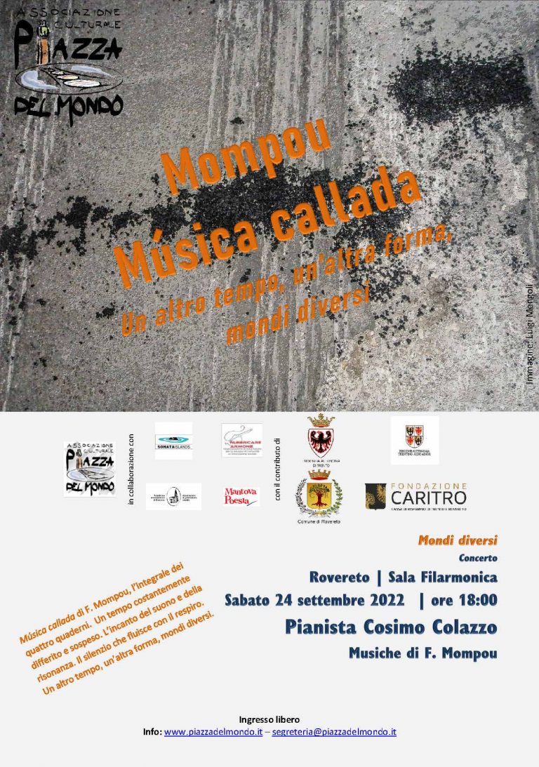 L’Associazione Culturale “Piazza del Mondo”, con sede a Rovereto (TN), nasce dall’intento di fare cultura promuovendo il confronto interdisciplinare tra gli ambiti umanistico, scientifico, artistico; la relazione tra territori diversi; il dialogo delle alterità.