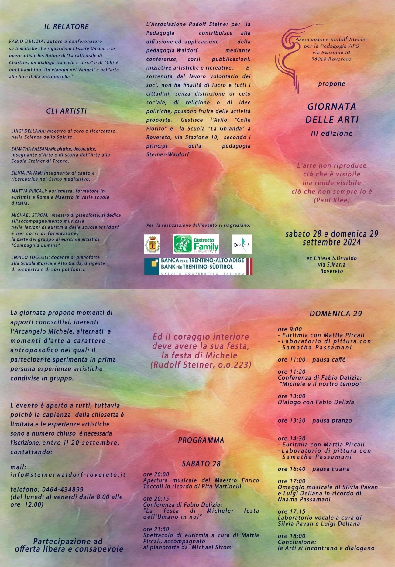 La giornata propone momenti di apporti conosciti, inerenti l'Arcangelo Michele, alternati a momenti d'arte a carattere antroposofico nei quali il partecipante sperimenta in prima persona esperienze artistiche condivise in gruppo.