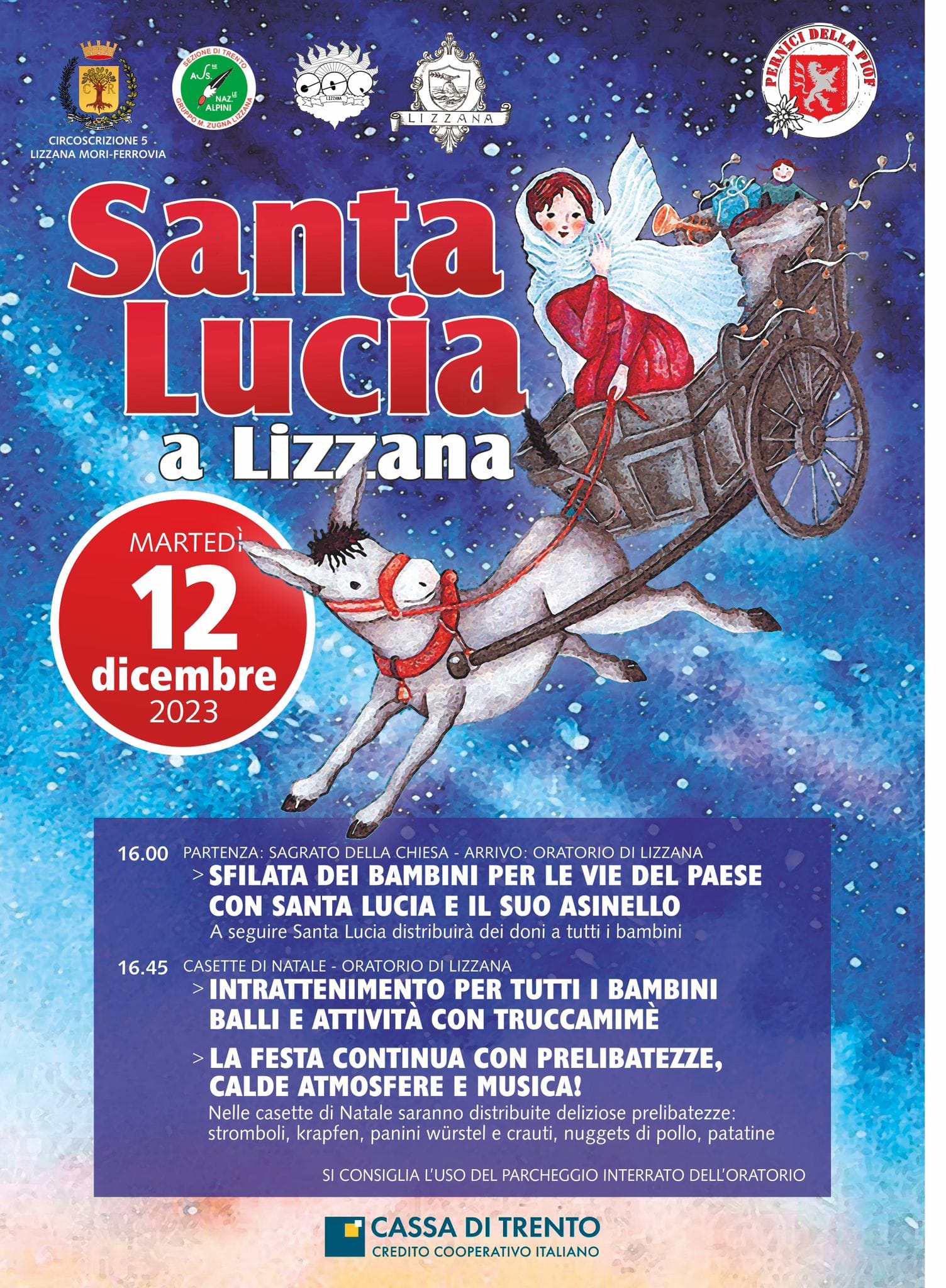 La Circoscrizione 5a Lizzana - Mori Ferrovia, insieme all'associazione Pernici della Piof, Oratorio di Lizzana, Gruppo Alpini di Lizzana, organizza la tradizionale festa di Santa Lucia!
