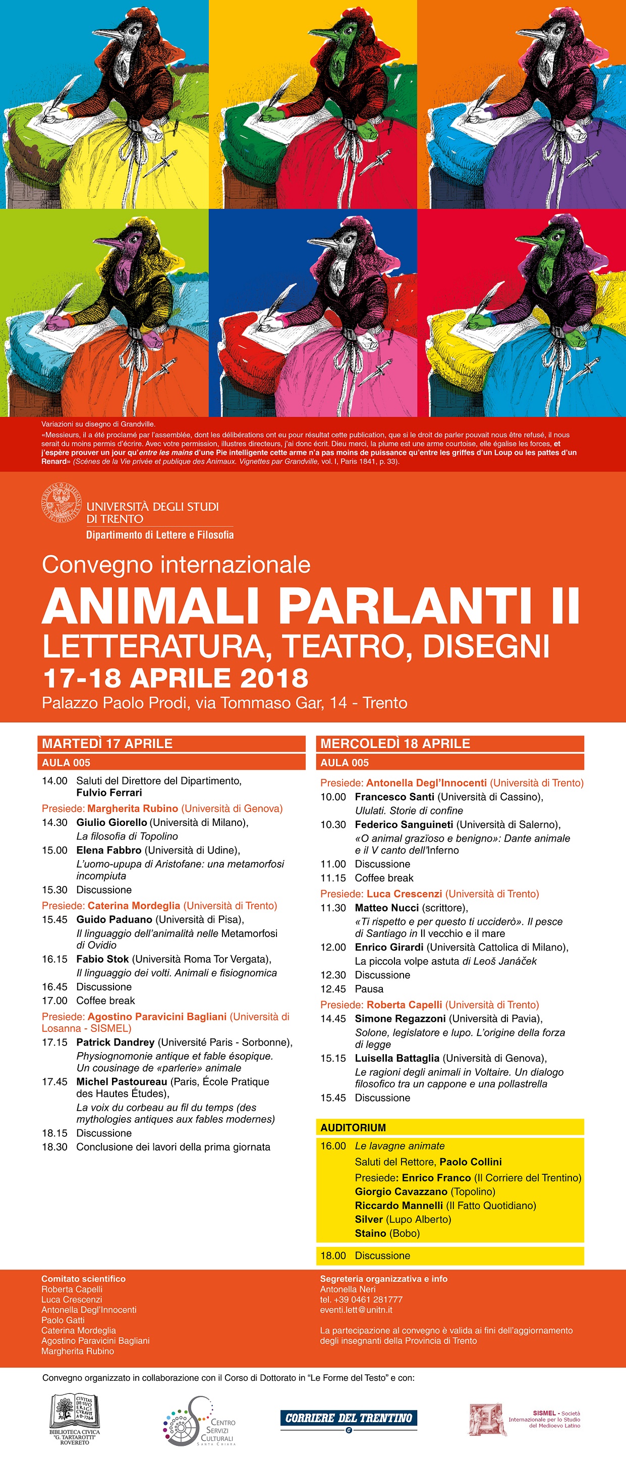 Durante l’incontro che si terrà presso Palazzo Fedrigotti (Aula convegni - c.so Bettini, 31 - Rovereto) sarà presentato il volume “Animali parlanti. Letteratura, teatro, canzone”, a cura di C. Mordeglia, Firenze, SISMEL - Edizioni del Galluzzo, 2017 (Micrologus Library, 82). Sarà presente la curatrice.