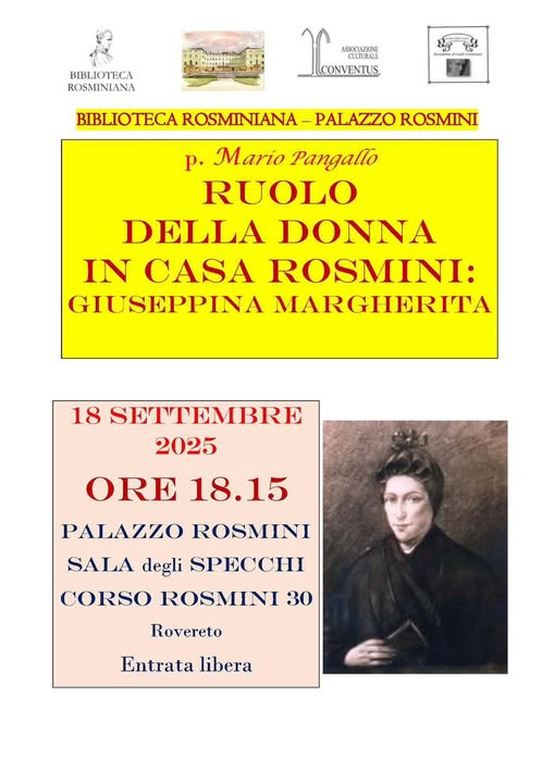 Conferenza presso la Sala degli Specchi, Casa Natale Beato A. Rosmini"Ruolo della donna in Casa Rosmini: Giuseppina Margherita "Relatore: padre Mario Pangallo