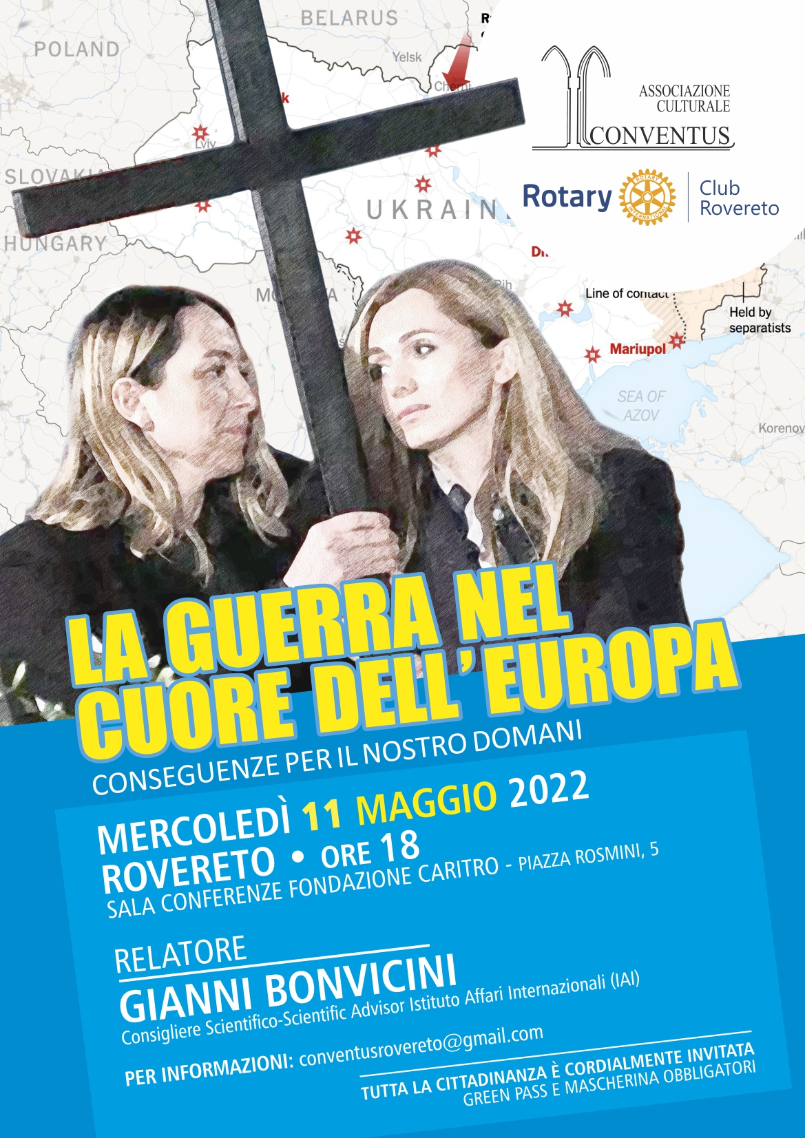 Sarà relatore il dott. Gianni Bonvicini, trentino Direttore Generale dell'Istituto Affari Internazionali, uno dei massimi esperti italiani di politica estera, sul tema :La guerra nel cuore dell'Europa, conseguenze per il nostro domani.