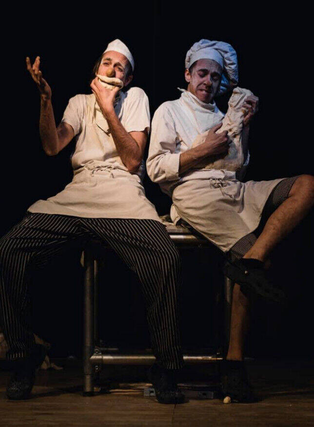 "Due eccentrici panettieri con velleità circensi iniziano a far lievitare dall'impasto del pane scherzi e giochi di ogni sorta. Tra acrobazie pericolanti, giocoleria con gli strumenti del fornaio e nuvole di farina magica, non di solo pane riderà il pubblico, ma di ogni gag dei nostri panettieri!"