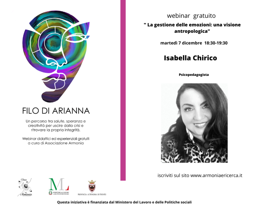 I webinar sono gratuiti, vanno prenotati sul sito www.armoniaericerca.it/filo-di-arianna/
