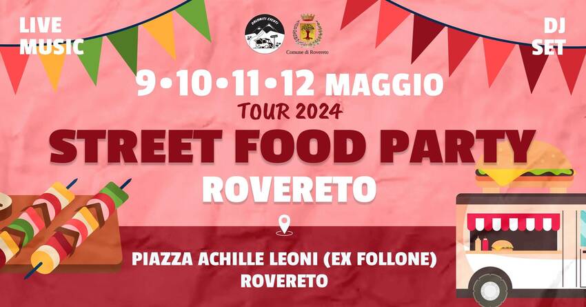 Party enogastronomico del cibo di strada nel centro di Rovereto.