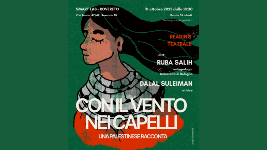 “Con il vento nei capelli. Una palestinese racconta”, un reading tratto dal libro omonimo, attraverso il quale Ruba Salih, antropologa dell'Università di Bologna, ripercorre la vita di sua madre, la scrittrice femminista palestinese Salwa Salem, accompagnata dalle letture di Dalal Suleiman, attrice. Un inno alla capacità di resistenza delle donne palestinese, generazione dopo generazione, alla violenza dell'occupazione israeliana.